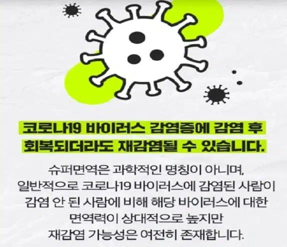 감염안된 사람에 비해 해당 바이러스에 대한 면역력이 높지만 재감염 가능성은 존재합니다.